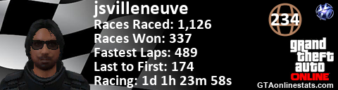 [URL=http://GTAonlinestats.com/showplayer/jsvilleneuve][IMG]http://GTAonlinestats.com/racesignature/jsvilleneuve/sig.png[/IMG][/URL]