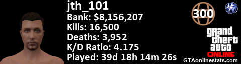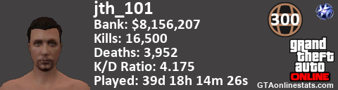 [URL=http://GTAonlinestats.com/showplayer/jth_101][IMG]http://GTAonlinestats.com/signature/jth_101/sig.png[/IMG][/URL]