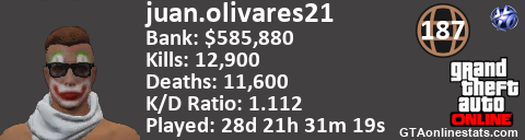 <a href="http://GTAonlinestats.com/showplayer/juan.olivares21"><img src="http://GTAonlinestats.com/signature/juan.olivares21/sig.png" alt="Juan.Olivares21" border="0" /></a>