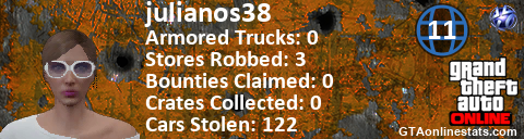 [URL=http://GTAonlinestats.com/showplayer/julianos38/2][IMG]http://GTAonlinestats.com/crimesignature/julianos38/2/sig.png[/IMG][/URL]