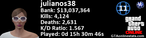 <a href="http://GTAonlinestats.com/showplayer/julianos38/2"><img src="http://GTAonlinestats.com/dmsignature/julianos38/2/sig.png" alt="julianos38" border="0" /></a>