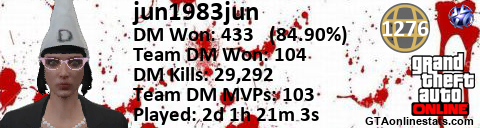 [URL=http://GTAonlinestats.com/showplayer/jun1983jun][IMG]http://GTAonlinestats.com/dmsignature/jun1983jun/sig.png[/IMG][/URL]