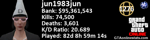 <a href="http://GTAonlinestats.com/showplayer/jun1983jun"><img src="http://GTAonlinestats.com/dmsignature/jun1983jun/sig.png" alt="jun1983jun" border="0" /></a>