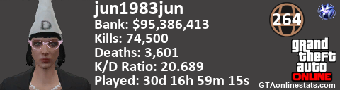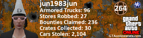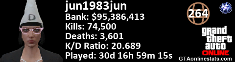 <a href="http://GTAonlinestats.com/showplayer/jun1983jun/2"><img src="http://GTAonlinestats.com/randomsignature/jun1983jun/2/sig.png" alt="jun1983jun" border="0" /></a>