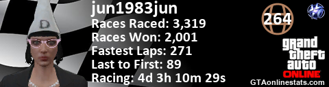 <a href="http://GTAonlinestats.com/showplayer/jun1983jun/2"><img src="http://GTAonlinestats.com/racesignature/jun1983jun/2/sig.png" alt="jun1983jun" border="0" /></a>