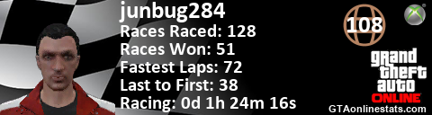 <a href="http://GTAonlinestats.com/showplayer/junbug284"><img src="http://GTAonlinestats.com/racesignature/junbug284/sig.png" alt="junbug284" border="0" /></a>