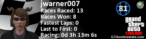 [URL=http://GTAonlinestats.com/showplayer/jwarner007/2][IMG]http://GTAonlinestats.com/racesignature/jwarner007/2/sig.png[/IMG][/URL]