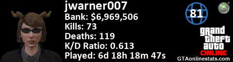 <a href="http://GTAonlinestats.com/showplayer/jwarner007/2"><img src="http://GTAonlinestats.com/randomsignature/jwarner007/2/sig.png" alt="jwarner007" border="0" /></a>