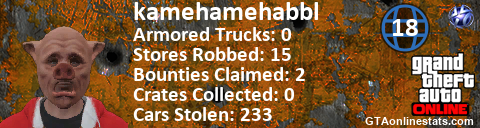 [URL=http://GTAonlinestats.com/showplayer/kamehamehabbl][IMG]http://GTAonlinestats.com/crimesignature/kamehamehabbl/sig.png[/IMG][/URL]