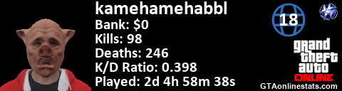 <a href="http://GTAonlinestats.com/showplayer/kamehamehabbl"><img src="http://GTAonlinestats.com/randomsignature/kamehamehabbl/sig.png" alt="KamehamehaBBL" border="0" /></a>
