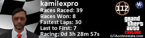<a href="http://GTAonlinestats.com/showplayer/kamilexpro"><img src="http://GTAonlinestats.com/racesignature/kamilexpro/sig.png" alt="kamilexpro" border="0" /></a>