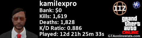 <a href="http://GTAonlinestats.com/showplayer/kamilexpro"><img src="http://GTAonlinestats.com/signature/kamilexpro/sig.png" alt="kamilexpro" border="0" /></a>