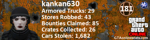 [URL=http://GTAonlinestats.com/showplayer/kankan630/2][IMG]http://GTAonlinestats.com/crimesignature/kankan630/2/sig.png[/IMG][/URL]