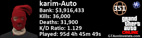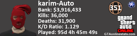 <a href="http://GTAonlinestats.com/showplayer/karim-Auto"><img src="http://GTAonlinestats.com/randomsignature/karim-Auto/sig.png" alt="karim-Auto" border="0" /></a>