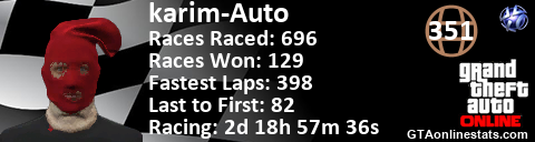 <a href="http://GTAonlinestats.com/showplayer/karim-Auto"><img src="http://GTAonlinestats.com/racesignature/karim-Auto/sig.png" alt="karim-Auto" border="0" /></a>