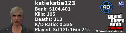 <a href="http://GTAonlinestats.com/showplayer/katiekatie123"><img src="http://GTAonlinestats.com/signature/katiekatie123/sig.png" alt="katiekatie123" border="0" /></a>