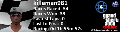 [URL=http://GTAonlinestats.com/showplayer/killaman981/3][IMG]http://GTAonlinestats.com/racesignature/killaman981/3/sig.png[/IMG][/URL]