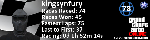 <a href="http://GTAonlinestats.com/showplayer/kingsynfury"><img src="http://GTAonlinestats.com/racesignature/kingsynfury/sig.png" alt="kingsynfury" border="0" /></a>
