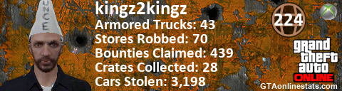 [URL=http://GTAonlinestats.com/showplayer/kingz2kingz][IMG]http://GTAonlinestats.com/randomsignature/kingz2kingz/sig.png[/IMG][/URL]