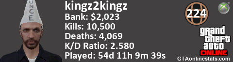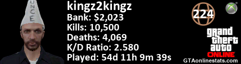[URL=http://GTAonlinestats.com/showplayer/kingz2kingz][IMG]http://GTAonlinestats.com/signature/kingz2kingz/sig.png[/IMG][/URL]