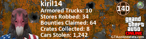 [URL=http://GTAonlinestats.com/showplayer/kiril14][IMG]http://GTAonlinestats.com/signature/kiril14/sig.png[/IMG][/URL]
