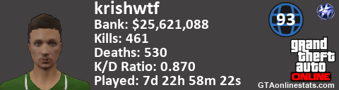[URL=http://GTAonlinestats.com/showplayer/krishwtf][IMG]http://GTAonlinestats.com/signature/krishwtf/sig.png[/IMG][/URL]