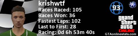 <a href="http://GTAonlinestats.com/showplayer/krishwtf"><img src="http://GTAonlinestats.com/racesignature/krishwtf/sig.png" alt="krishwtf" border="0" /></a>