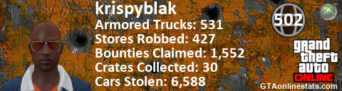 [URL=http://GTAonlinestats.com/showplayer/krispyblak][IMG]http://GTAonlinestats.com/signature/krispyblak/sig.png[/IMG][/URL]