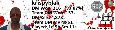 [URL=http://GTAonlinestats.com/showplayer/krispyblak][IMG]http://GTAonlinestats.com/dmsignature/krispyblak/sig.png[/IMG][/URL]