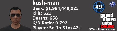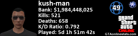 <a href="http://GTAonlinestats.com/showplayer/kush-man"><img src="http://GTAonlinestats.com/randomsignature/kush-man/sig.png" alt="KUSH-MAN" border="0" /></a>