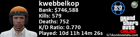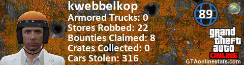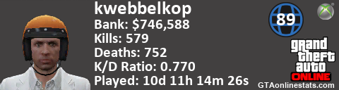 [URL=http://GTAonlinestats.com/showplayer/kwebbelkop][IMG]http://GTAonlinestats.com/signature/kwebbelkop/sig.png[/IMG][/URL]