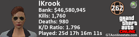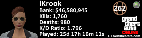 <a href="http://GTAonlinestats.com/showplayer/lKrook"><img src="http://GTAonlinestats.com/signature/lKrook/sig.png" alt="lKrook" border="0" /></a>