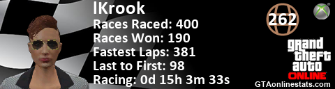 <a href="http://GTAonlinestats.com/showplayer/lKrook"><img src="http://GTAonlinestats.com/racesignature/lKrook/sig.png" alt="lKrook" border="0" /></a>