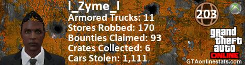[URL=http://GTAonlinestats.com/showplayer/l_Zyme_l][IMG]http://GTAonlinestats.com/randomsignature/l_Zyme_l/sig.png[/IMG][/URL]