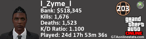 [URL=http://GTAonlinestats.com/showplayer/l_Zyme_l][IMG]http://GTAonlinestats.com/signature/l_Zyme_l/sig.png[/IMG][/URL]