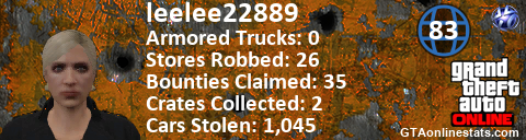 [URL=http://GTAonlinestats.com/showplayer/leelee22889][IMG]http://GTAonlinestats.com/crimesignature/leelee22889/sig.png[/IMG][/URL]