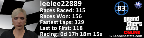 [URL=http://GTAonlinestats.com/showplayer/leelee22889][IMG]http://GTAonlinestats.com/racesignature/leelee22889/sig.png[/IMG][/URL]