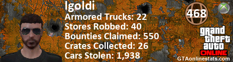 [URL=http://GTAonlinestats.com/showplayer/lgoldi][IMG]http://GTAonlinestats.com/signature/lgoldi/sig.png[/IMG][/URL]