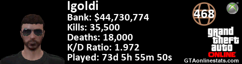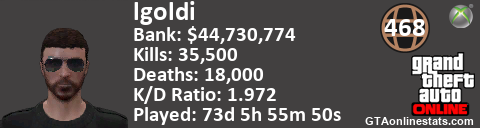 <a href="http://GTAonlinestats.com/showplayer/lgoldi"><img src="http://GTAonlinestats.com/randomsignature/lgoldi/sig.png" alt="lgoldi" border="0" /></a>