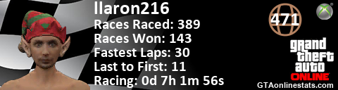 [URL=http://GTAonlinestats.com/showplayer/llaron216][IMG]http://GTAonlinestats.com/racesignature/llaron216/sig.png[/IMG][/URL]