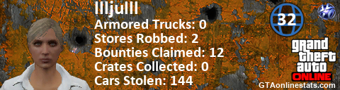 [URL=http://GTAonlinestats.com/showplayer/llljulll/2][IMG]http://GTAonlinestats.com/crimesignature/llljulll/2/sig.png[/IMG][/URL]