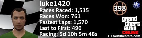 [URL=http://GTAonlinestats.com/showplayer/luke1420][IMG]http://GTAonlinestats.com/racesignature/luke1420/sig.png[/IMG][/URL]