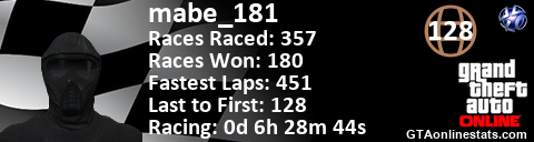 <a href="http://GTAonlinestats.com/showplayer/mabe_181"><img src="http://GTAonlinestats.com/racesignature/mabe_181/sig.png" alt="mabe_181" border="0" /></a>