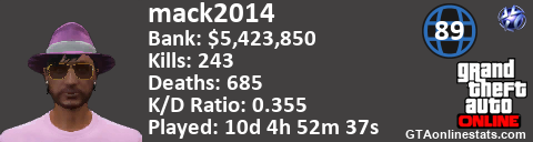 [URL=http://GTAonlinestats.com/showplayer/mack2014][IMG]http://GTAonlinestats.com/signature/mack2014/sig.png[/IMG][/URL]