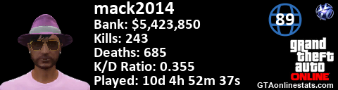 <a href="http://GTAonlinestats.com/showplayer/mack2014"><img src="http://GTAonlinestats.com/signature/mack2014/sig.png" alt="mack2014" border="0" /></a>