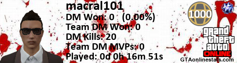 [URL=http://GTAonlinestats.com/showplayer/macral101][IMG]http://GTAonlinestats.com/dmsignature/macral101/sig.png[/IMG][/URL]