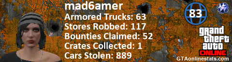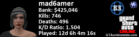 <a href="http://GTAonlinestats.com/showplayer/mad6amer"><img src="http://GTAonlinestats.com/randomsignature/mad6amer/sig.png" alt="mad6amer" border="0" /></a>