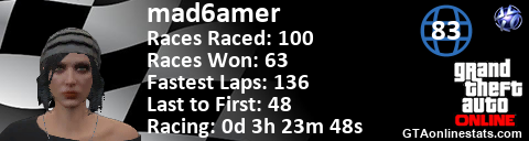 <a href="http://GTAonlinestats.com/showplayer/mad6amer"><img src="http://GTAonlinestats.com/racesignature/mad6amer/sig.png" alt="mad6amer" border="0" /></a>