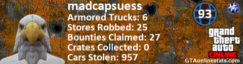 [URL=http://GTAonlinestats.com/showplayer/madcapsuess][IMG]http://GTAonlinestats.com/crimesignature/madcapsuess/sig.png[/IMG][/URL]