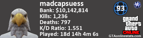 <a href="http://GTAonlinestats.com/showplayer/madcapsuess"><img src="http://GTAonlinestats.com/randomsignature/madcapsuess/sig.png" alt="madcapsuess" border="0" /></a>